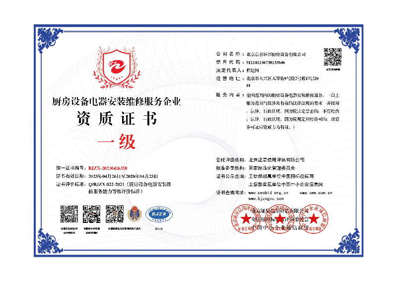 北京京泰leyucom乐鱼厨房设备有限公司拥有科学的管理机制,30多名专业的技术管理人员,实现了企业管理的专业化、年轻化。公司实行全方位的优化管理,严格按ISO9001质量体系运作过程,建立科学的管理模式,实行岗位责任制及目标激励机制。是服务综合实力得以不断提高。