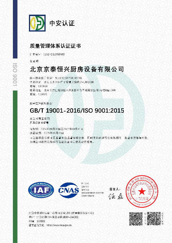 厨房设备质量管理体系认证